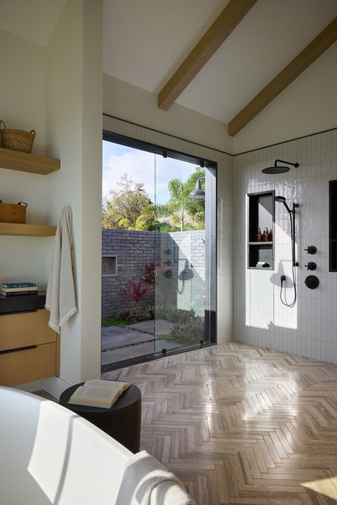 White Palms is a 4100 square-foot vacation home situated on the hillside above Lahaina, Maui. In collaboration with architect Kasprzycki Designs, SBI was brought on to actualize the Vancouver clients' dreams of a Napa Valley-inspired modern farmhouse, unlike the Hawaiianstyle homes typically found on the island.